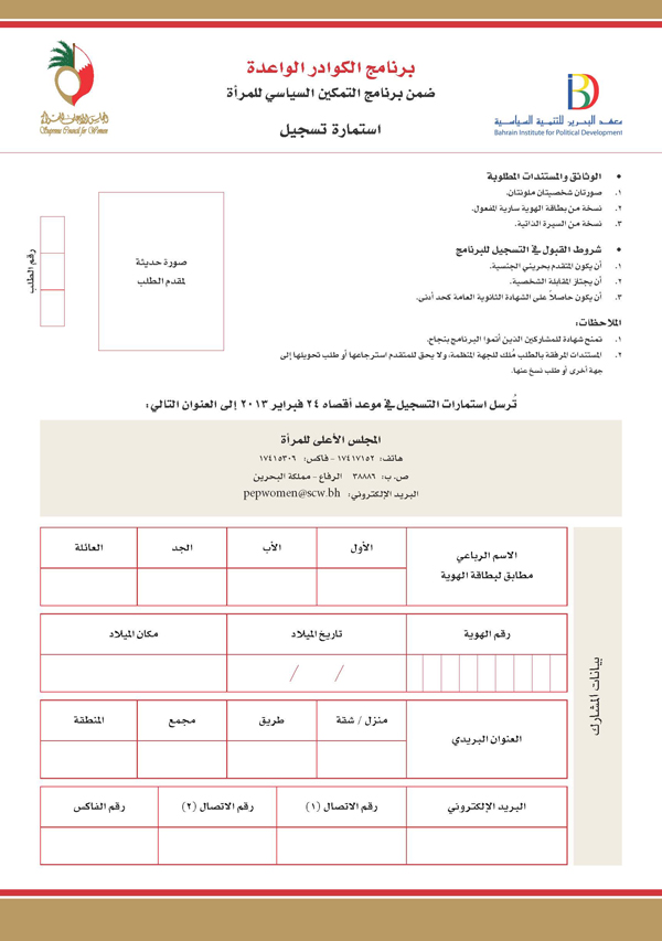 لتحميل استمارة التسجيل ببرنامج الكوادر الواعدة، يرجى