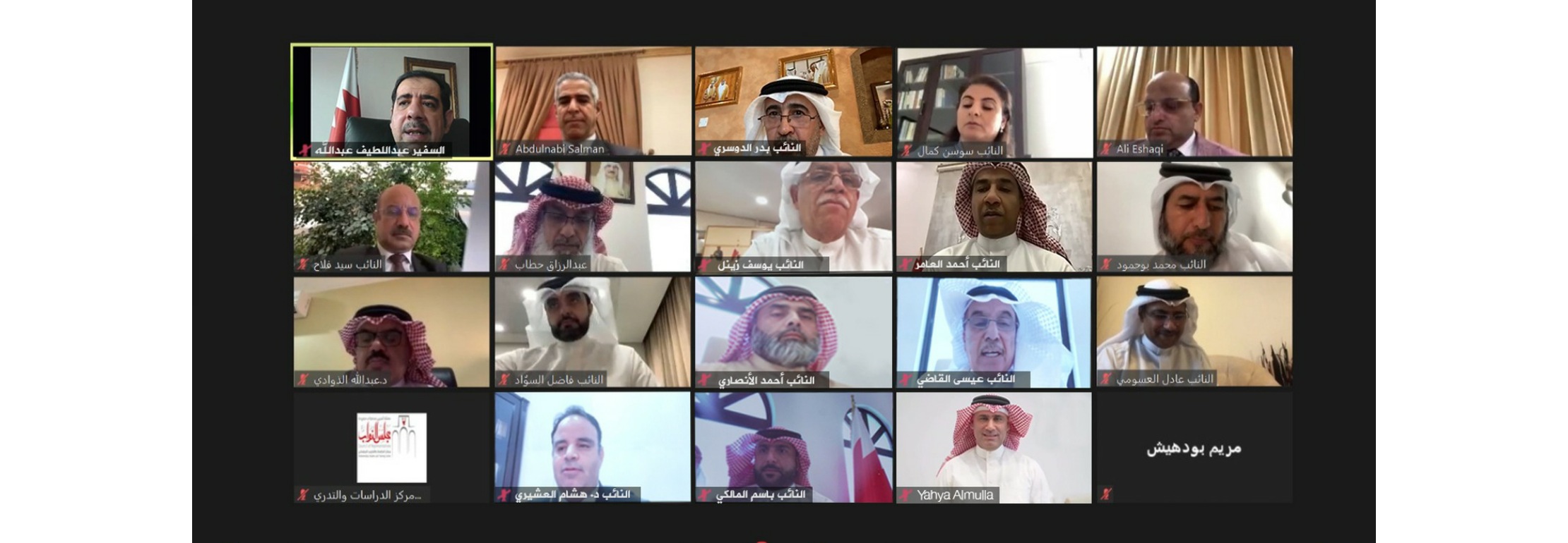 انطلاقًا من الحرص المشترك بين معهد البحرين للتنمية السياسية والأمانة العامة لمجلس النواب على تقديم الدعم المستمر بما يخدم العمل التشريعي، وبهدف تعزيز مهارات السادة أعضاء مجلس النواب من أداء دورهم التشريعي والرقابي بحرفية عالية، نظم المعهد بالشراكة مع مجلس النواب محاضرة إلكترونية بعنوان "الدبلوماسية البرلمانية" للسادة أعضاء مجلس النواب، قدمها سعادة السفير عبد الله عبد اللطيف عبد الله سفير مملكة البحرين لدى جمهورية ألمانيا الاتحادية، عبر تقنية الاتصال المرئي.
