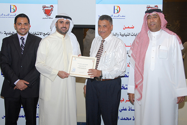 و من جمعية الميثاق الوطني قال إبراهيم المناعي أن الدورات وورش العمل التي يقيمها معهد البحرين للتنمية السياسية خطوة مهمة وضرورية في عملية تثقيف المرشحين، وتتماشى مع الأهداف التي أنشأ من أجلها وهو نشر ثقافة التنمية السياسية، وتوعية المواطنين بالعمل السياسي وفقا لرؤية المشروع الإصلاحي لجلالة الملك.