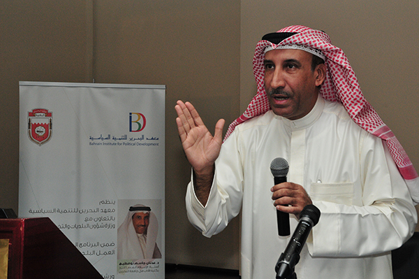 وتابع قائلاً: "تعد المجالس البلدية - بحكم قانون إنشاء وتنظيم المعهد - واحدة من الجهات الواجب على معهد البحرين للتنمية السياسية أن يدعم تجربتها ويبرز دورها في خدمة الوطن والمواطن، شأنها في ذلك شأن التجربة البرلمانية الواجب على المعهد دعمها من خلال شرح آلياتها، وأساليب عملها، وبيان دورها الرقابي والتشريعي. كما أن المعهد ملتزم بتوفير برامج التدريب والدراسات والبحوث المتعلقة بالمجال الدستوري والقانوني لفئات الشعب المختلفة، ومن بين تلك الفئات أعضاء المجالس البلدية والعاملون في وزارات الدولة والهيئات والمؤسسات العامة والخاصة ومؤسسات المجتمع المدني".
