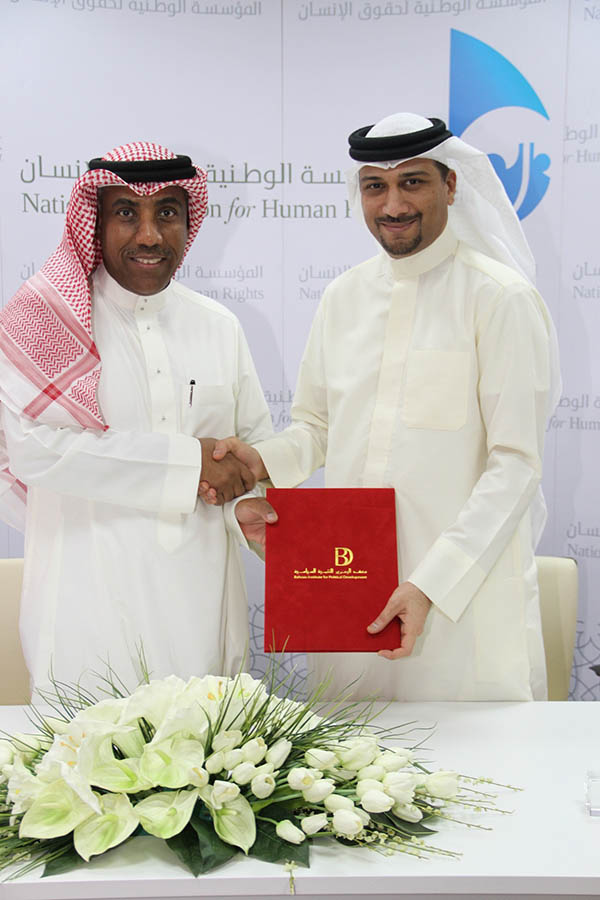 وقعت المؤسسة الوطنية لحقوق الإنسان مذكرة تفاهم مع معهد البحرين للتنمية السياسية وذلك صباح اليوم في مقر المؤسسة الوطنية بضاحية السيف.