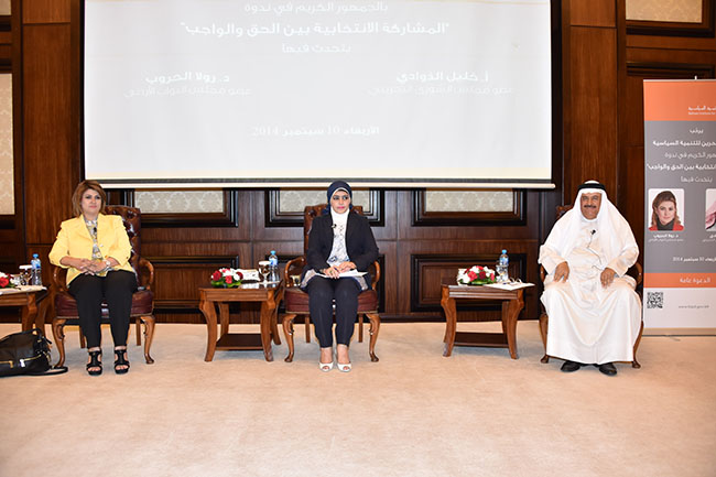 ويطرح عضو مجلس الشورى أ. خليل الذوادي خلال الندوة عدة محاور تتطرق إلى الإطار القانوني والدستوري المنظم لعملية المشاركة السياسية، ومراحل بدء العملية الإنتخابية، بالإضافة إلى دور مؤسسات المجتمع المدني في التوعية الإنتخابية، كما تقدم نائب البرلمان الأردني د. رولا الحروب محاور أخرى تتضمن طرق التعبير السلمي عن المطالب السياسية، والمشاركة السياسية في صنع القرار، واختيار المرشحين من خلال تقييمهم وتحليل برامجهم الانتخابية.