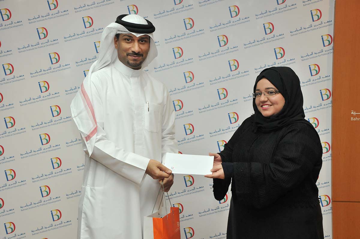 قام الدكتور ياسر العلوي المدير التنفيذي لمعهد البحرين للتنمية السياسية أمس الأربعاء بتسليم جائزة الأسبوع الأول للفائزة في مسابقة المعهد الرمضانية لجائزة منتدى الإعلام السياسي، والتي أطلقها عبر حساب الجائزة على موقع التواصل الاجتماعي "انستغرام ـ PMFaward@ "، في إطار جهوده للترويج للجائزة ورؤيتها ورسالتها وأهدافها، والمتمثلة في تأصيل روح المسؤولية الوطنية للصحفيين والإعلاميين، وتشجيعهم على الممارسة المهنية الإيجابية وتفعيل ثقافة التسامح وقبول الآخر، حيث تحمل الجائزة لهذا العام شعار (تعزيز ثقافة الاختلاف).