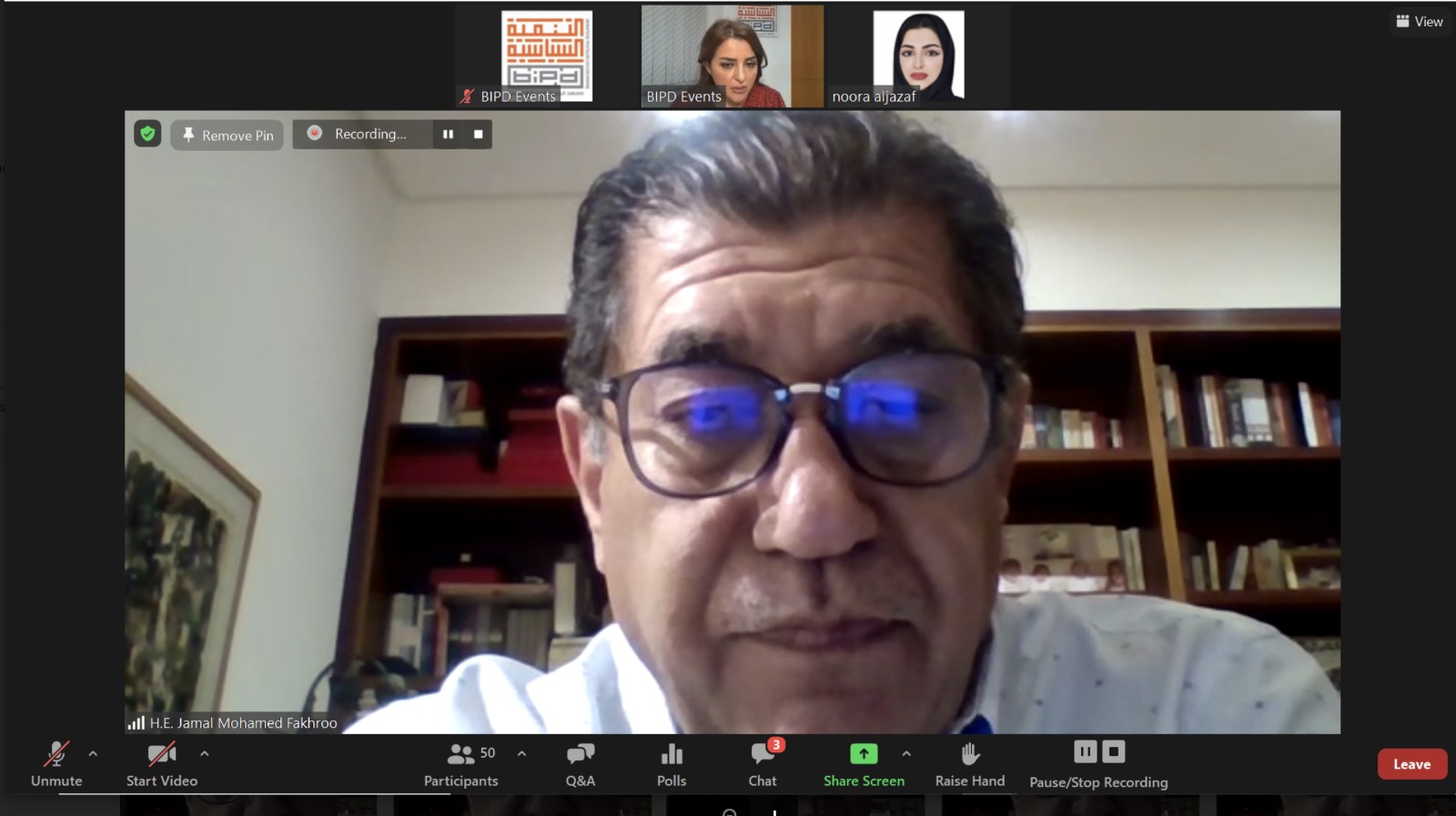وأشار فخرو أن ثلثي دول العالم أصبح فيها نوعاً من التراجع في الديمقراطية، مقابل 8% فقط تطورت، وهو ما يعني أن الديمقراطية على مستوى العام ككل تحتاج إلى عناية خاصة، منوهاً إلى أن قياس الديمقراطية ليس بوجود البرلمان فقط، وإنما بمستوى الثقافة السياسية والممارسة الديمقراطية في الحياة العامة، وهو ما يتطلب جهوداً من مختلف المؤسسات الرسمية والأهلية ومنظمات المجتمع المدني.