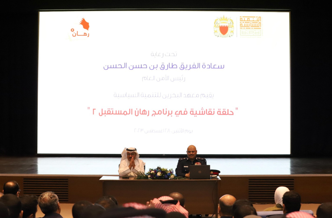 جاء ذلك خلال لقاء سعادته بالمشاركين في الحلقة النقاشية ضمن المرحلة الثانية من برنامج رهان المستقبل2 للشباب ، في الفئة العمرية من 18-30 عاماً والتي نظمها معهد البحرين للتنمية السياسية بالتعاون مع الأكاديمية الملكية للشرطة.