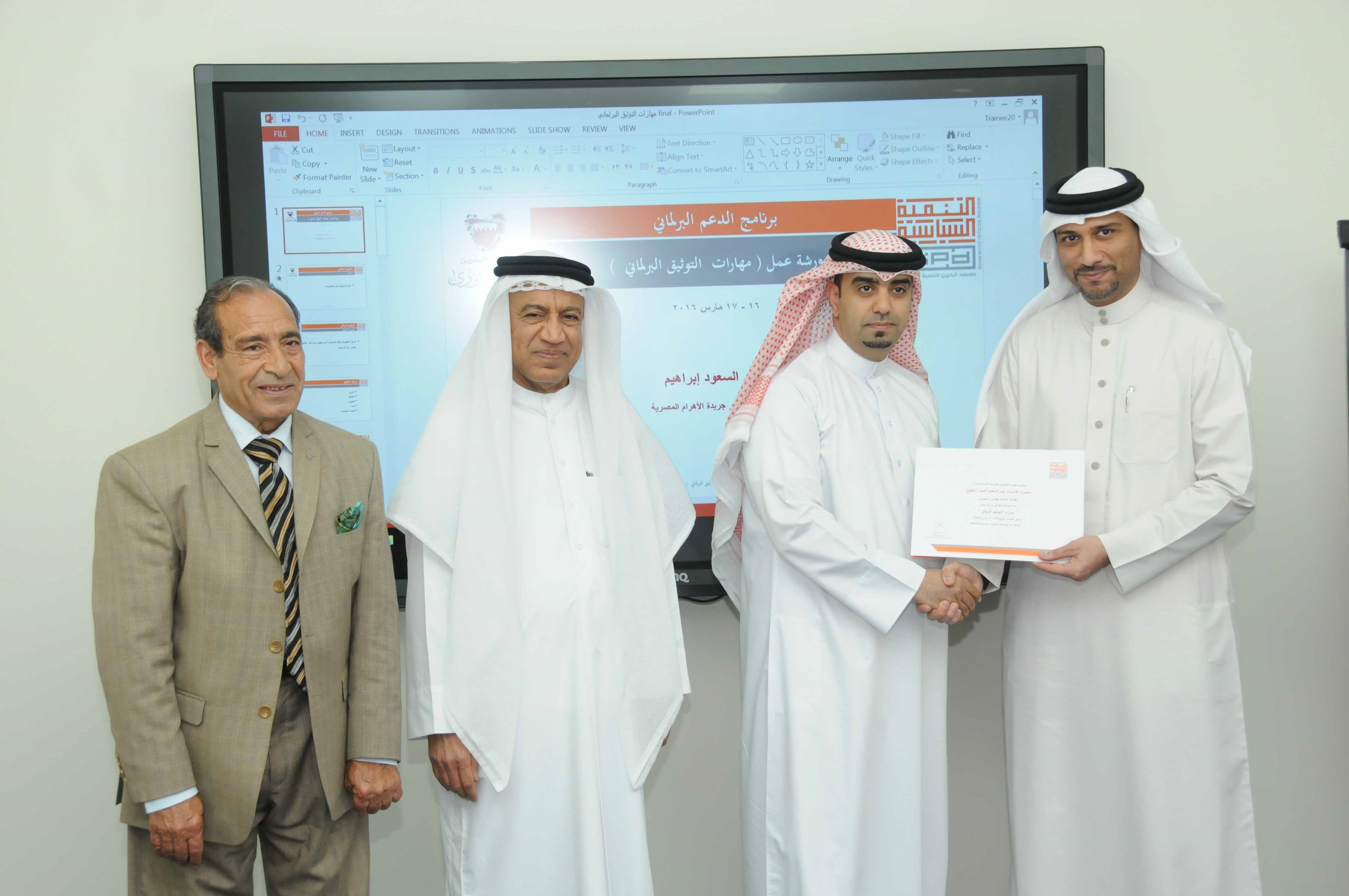 انتهت اليوم ورشة "التوثيق البرلماني" الذي نظمها معهد البحرين للتنمية السياسية ضمن برنامج "الدعم البرلماني" لموظفي الأمانة العامة بمجلس الشورى. امتدت الورشة على مدى يومين، أمس الأربعاء واليوم الخميس 16 و17 مارس الحالي، وتعد واحدة من المواضيع المهمة في برنامج "الدعم البرلماني" الذي يطمح المعهد من خلاله إلى دعم مهارات وتنمية قدرات موظفي الأمانة العامة بمجلس الشورى، وتعزيز الجانب المهاري لهم في عملية التوثيق البرلماني.